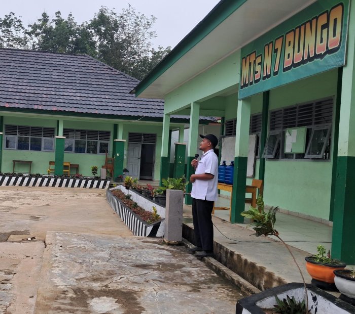 Tanah Tumbuh (MTsN 7 Bungo) - Kepala MTsN 7 Bungo, Bapak Firdaus.Ar, S.Pd.I, kembali memimpin kegiatan apel di madrasah sehari setelah seluruh rangkaian Asesmen Sumatif Akhir Semester (ASAS) Ganjil Tahun Pelajaran 2025/2026 resmi berakhir. Apel tersebut dilaksanakan pada Senin (8/12/2025) di halaman utama MTsN 7 Bungo dan diikuti oleh seluruh siswa dengan tertib dan penuh khidmat.