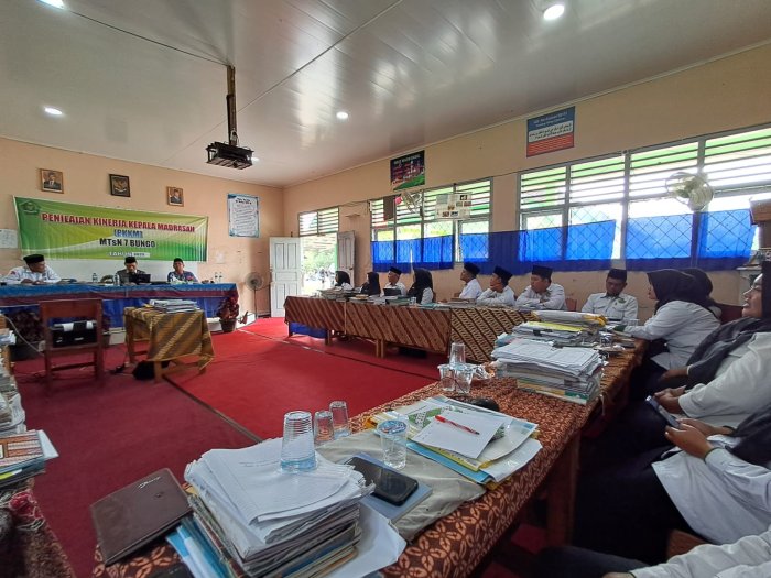 Dalam pelaksanaannya, tim penilai tidak hanya melakukan pemeriksaan terhadap dokumen dan data pendukung administrasi PKKM, tetapi juga memberikan pembinaan, motivasi, serta wejangan kepada seluruh Guru dan Tenaga Kependidikan (GTK) MTsN 7 Bungo. Suasana kegiatan berlangsung hangat dan penuh kekeluargaan, mencerminkan semangat kebersamaan dalam upaya peningkatan mutu pendidikan madrasah.