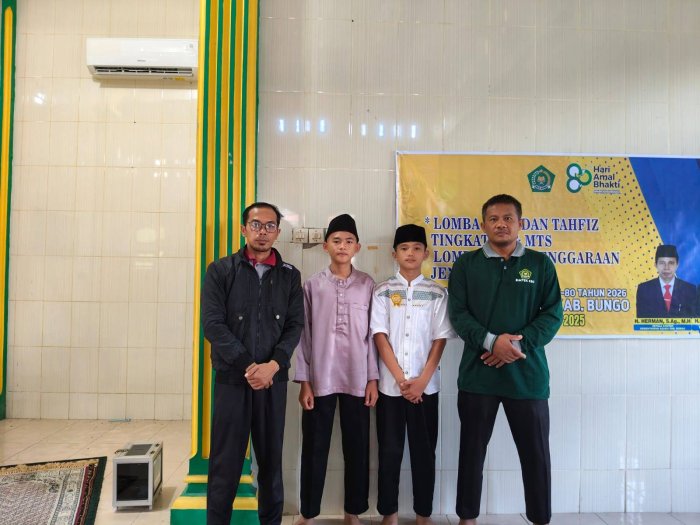 Tanah Tumbuh (Humas MTsN 7 Bungo) - Siswa MTsNegeri 7 Bungo kembali menorehkan partisipasi membanggakan dengan mewakili madrasah dalam ajang perlombaan tingkat MTs se-Kabupaten Bungo yang diselenggarakan oleh Kantor Kementerian Agama Kabupaten Bungo. Kegiatan ini dilaksanakan dalam rangka memeriahkan Hari Amal Bakti (HAB) Kementerian Agama dan bertempat di Kantor Kemenag Kabupaten Bungo, Selasa (16/12/2025).
