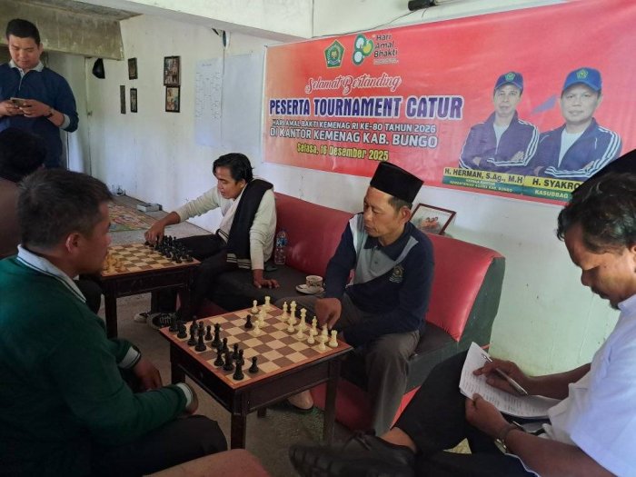 Tanah Tumbuh (Humas MTsN 7 Bungo) - Dalam rangka memeriahkan peringatan Hari Amal Bakti (HAB) ke-80 Kementerian Agama Republik Indonesia, Panitia HAB Kantor Kementerian Agama Kabupaten Bungo menggelar pertandingan catur antar Satuan Kerja (Satker) se-Kabupaten Bungo. Kegiatan ini dilaksanakan pada Selasa (16/12/2025) di salah satu Gedung Kantor Kementerian Agama Kabupaten Bungo.