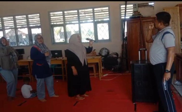 Sementara itu, di ruang laboratorium madrasah dilaksanakan latihan lomba karaoke sambung lirik yang dipandu oleh Bapak Ahmad Mursalin, S.Pd. Lomba karaoke sambung lirik merupakan ajang bernyanyi di mana peserta harus melanjutkan potongan lirik lagu secara bergantian. Penilaian lomba ini meliputi penguasaan lagu, teknik vokal, penampilan panggung, serta ketepatan nada, dengan menggunakan lagu-lagu yang telah ditentukan oleh panitia.