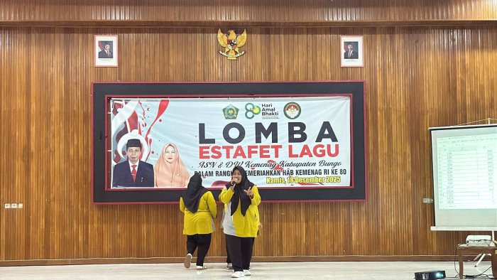 Muara Bungo (Humas MTsN 7 Bungo) - Dalam rangka memeriahkan peringatan Hari Amal Bakti (HAB) ke-80 Kementerian Agama Republik Indonesia, Dharma Wanita Persatuan (DWP) Kantor Kementerian Agama Kabupaten Bungo menggelar berbagai perlombaan hiburan antar ASN dan Dharma Wanita (DW) Satuan Kerja (Satker) se-Kabupaten Bungo. Kegiatan ini dilaksanakan pada Kamis (18/12/2025) bertempat di Kantor Kementerian Agama Kabupaten Bungo.