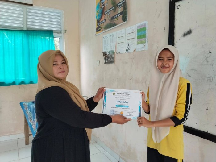 Tanah Tumbuh (Humas MTsN 7 Bungo) - Alhamdulillah, Madrasah Tsanawiyah Negeri (MTsN) 7 Bungo melaksanakan kegiatan pembagian rapor Semester Ganjil Tahun Pelajaran 2025/2026 pada Jumat (19/12/2025). Kegiatan ini menjadi momentum penting sebagai bentuk penyampaian hasil evaluasi proses belajar peserta didik selama satu semester.