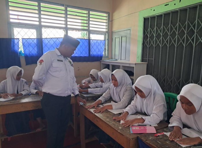 Tanah Tumbuh (MTsN 7 Bungo) - Dalam upaya memperkuat kedisiplinan dan menegakkan tata tertib madrasah, Guru Bimbingan Konseling (BK) MTsN 7 Bungo, Bapak Ahmad Mursalin, S.Pd, kembali melakukan penertiban siswa dengan mendatangi setiap kelas pada Selasa (13/1/2026). Kegiatan ini merupakan tindak lanjut dari razia yang telah dilakukan pada hari sebelumnya, sesaat setelah upacara bendera hari Senin.