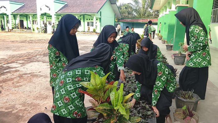 Di MTsN 7 Bungo, semangat peduli lingkungan itu terus ditanamkan kepada seluruh warga madrasah. Setiap pagi, sebelum kegiatan belajar mengajar dimulai, guru dan siswa melakukan aksi rutin membersihkan area madrasah, mulai dari menyapu halaman, merapikan sudut-sudut madrasah, hingga memastikan setiap area tetap bersih dan nyaman. Tidak hanya itu, siswa dan guru juga turut menata taman madrasah serta menanam berbagai tanaman hias guna memperindah lingkungan. Area hijau pun ditata ulang sehingga menghadirkan suasana yang lebih sejuk dan mendukung proses belajar mengajar yang kondusif.