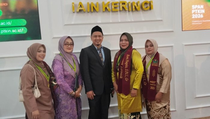 Tanah Tumbuh (MTsN 7 Bungo) - Salah satu Guru MTsN 7 Bungo, Ibu Widiyawati, S.Pd.I, Gr, turut serta dalam rangkaian Yudisium Ke-V Program Pendidikan Profesi Guru (PPG) Fakultas Tarbiyah dan Ilmu Keguruan (FTIK) Institut Agama Islam Negeri (IAIN) Kerinci yang berlangsung khidmat pada Kamis (15/1/2025). Kegiatan yang dirangkaikan dengan Pengukuhan Guru Profesional ini diselenggarakan secara luring di Aula Perpustakaan Digital IAIN Kerinci lantai 1 dan juga diikuti secara daring melalui platform Zoom Meeting.