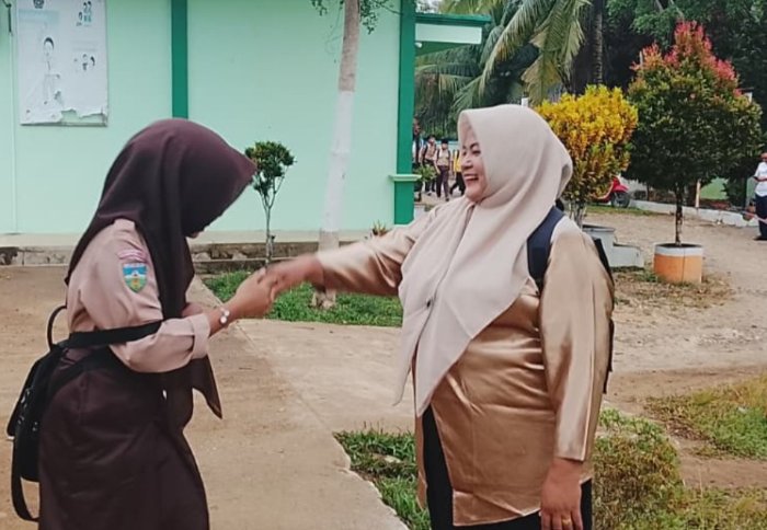 Tanah Tumbuh (MTsN 7 Bungo) - Budaya menyambut siswa dengan salam, senyum, dan sapa telah lama menjadi tradisi positif yang terus dijaga dan dilestarikan di MTsNegeri 7 Bungo. Kebiasaan yang tampak sederhana ini diyakini memiliki dampak besar dalam membangun suasana belajar yang ramah, hangat, dan harmonis di lingkungan madrasah.