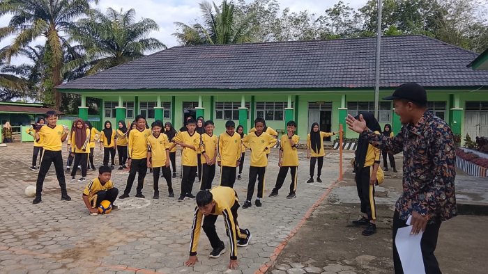 Tanah Tumbuh (Humas MTsN 7 Bungo) - Suasana lapangan MTsN 7 Bungo pada Rabu pagi (4/2/2026) tampak berbeda dari biasanya. Kegiatan Belajar Mengajar (KBM) kelas VIII C tidak berlangsung di dalam ruang kelas, melainkan di lapangan madrasah dengan suasana yang penuh semangat dan antusiasme. Yang membuat kegiatan ini semakin istimewa, Kepala Madrasah MTsN 7 Bungo, Bapak Firdaus, Ar., S.Pd.I, turun langsung memimpin proses pembelajaran materi lari estafet.
