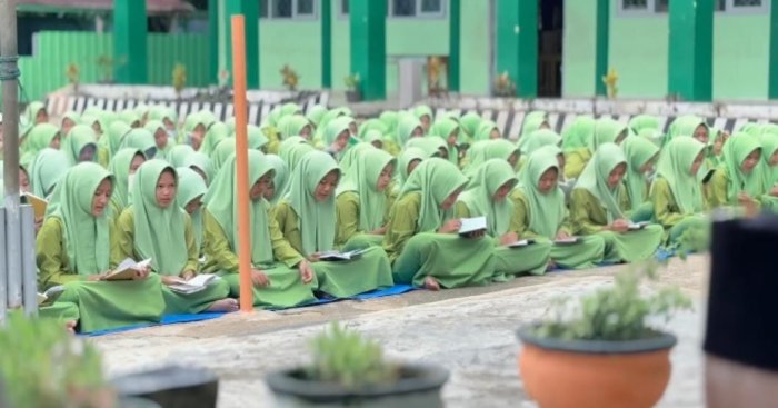 Tanah Tumbuh (Humas MTsN 7 Bungo) - Suasana Jum'at pagi di MTsNegeri 7 Bungo selalu menghadirkan nuansa yang berbeda. Sejak mentari mulai menyinari halaman madrasah, lantunan ayat suci Al-Qur'an dan shalawat Nabi menggema lembut, menenangkan hati seluruh warga madrasah. Rutinitas Yasinan dan shalawatan bersama ini bukan sekadar kebiasaan, melainkan menjadi ikhtiar bersama dalam meraih keberkahan sebelum memulai aktivitas belajar mengajar.
