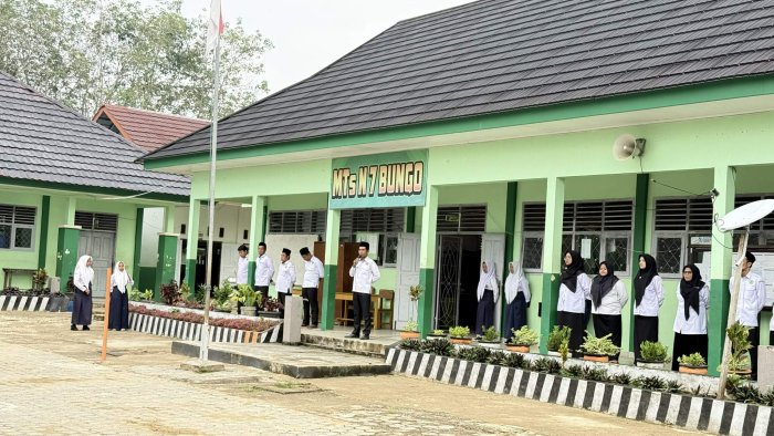 Tanah Tumbuh (Humas MTsN 7 Bungo) - Pelaksanaan upacara bendera Senin pagi (9/2/2026) di halaman MTsN 7 Bungo berlangsung dengan khidmat, tertib, dan penuh makna. Sejak pukul 07.20 WIB, seluruh elemen madrasah mulai dari dewan guru, tenaga kependidikan, hingga seluruh siswa telah berbaris rapi mengikuti rangkaian kegiatan upacara.