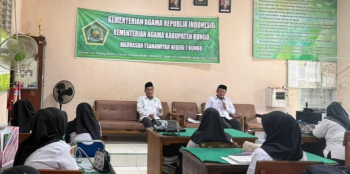 Tanah Tumbuh (Humas MTsN 7 Bungo) - Kepala MTsN 7 Bungo, Bapak Firdaus AR, S.Pd.I, memimpin rapat bahas berbagai agenda strategis bersama seluruh guru dan staf madrasah yang berlangsung di ruang guru MTsN 7 Bungo pada Senin (09/02/2026). Rapat ini digelar sebagai langkah awal dalam mematangkan berbagai agenda penting madrasah yang akan dilaksanakan dalam waktu dekat.