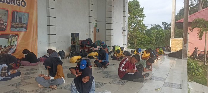 "Peserta Pelatihan Ketua Kelompok Palang Merah Remaja (PMR) utusan MTsN 7 Bungo telah melaksanakan Preetest pada awal masuk kegiatan. Semoga mendapatkan hasil yang memuaskan, amin,"ujar beliau.
