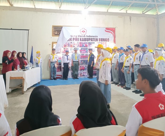 Tanah Tumbuh (Humas MTsN 7 Bungo) - Komitmen MTsNegeri 7 Bungo dalam menumbuhkan karakter kepemimpinan serta jiwa kemanusiaan peserta didik kembali diwujudkan melalui keikutsertaan dalam kegiatan Pelatihan Ketua Kelompok Pangkalan Palang Merah Remaja (PMR) Tahun 2026. Kegiatan ini resmi dibuka pada Selasa (10/2/2026) di Aula Pertemuan Bumi Perkemahan Candika, Muara Bungo.