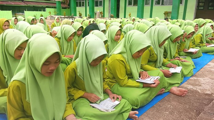 Tanah Tumbuh (Humas MTsN 7 Bungo) - Dalam suasana penuh berkah bulan suci Ramadhan 1447 Hijriah, keluarga besar MTsNegeri 7 Bungo kembali menggelar kegiatan Yasinan bersama pada Jum'at (27/2/2026). Kegiatan religius tersebut berlangsung di halaman utama madrasah dengan suasana yang khidmat, tertib, dan sarat kebersamaan.
