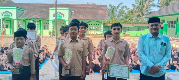 Tanah Tumbuh (Humas MTsN 7 Bungo) - Suasana bangga dan haru menyelimuti halaman utama MTsN 7 Bungo pada Sabtu (28/2/2026). Momentum yang sarat makna tersebut semakin istimewa dengan dilaksanakannya penyerahan piala dan sertifikat kepada para juara Liga Madrasah Tahun Pelajaran 2025/2026. Kegiatan ini digelar usai rangkaian tadarus bersama dalam program Ramadhan 1447 Hijriah, sehingga nuansa spiritual dan semangat kebersamaan semakin terasa kuat.