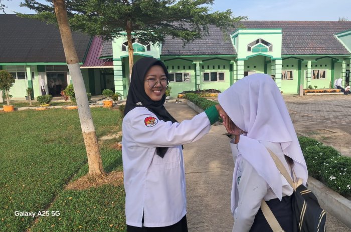 Setiap siswa yang datang menyalami guru dengan penuh hormat, sementara para guru menyambut dengan ramah dan penuh perhatian. Interaksi sederhana tersebut bukan sekadar rutinitas seremonial, melainkan wujud nyata upaya membangun kedekatan emosional antara guru dan peserta didik. Suasana kekeluargaan pun terasa kental, menciptakan lingkungan belajar yang nyaman, hangat, dan penuh semangat sejak pagi hari.