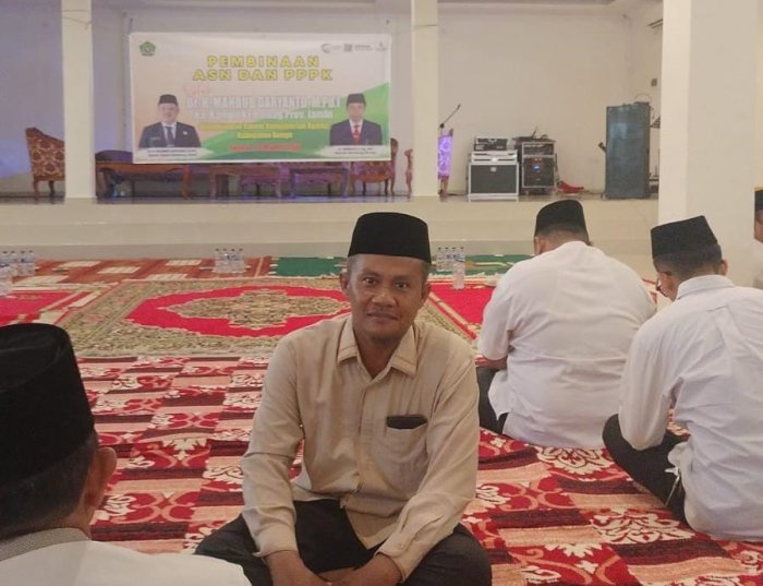 Muara Bungo (Humas) - Kepala MTsN 7 Bungo, Firdaus.Ar, S.Pd.I, turut menghadiri kegiatan pembinaan Aparatur Sipil Negara (ASN) dalam rangka kunjungan kerja Kantor Wilayah Kementerian Agama Provinsi Jambi. Kegiatan ini bertujuan untuk meningkatkan kinerja, disiplin, serta profesionalitas ASN di lingkungan Kantor Kementerian Agama Kabupaten Bungo.