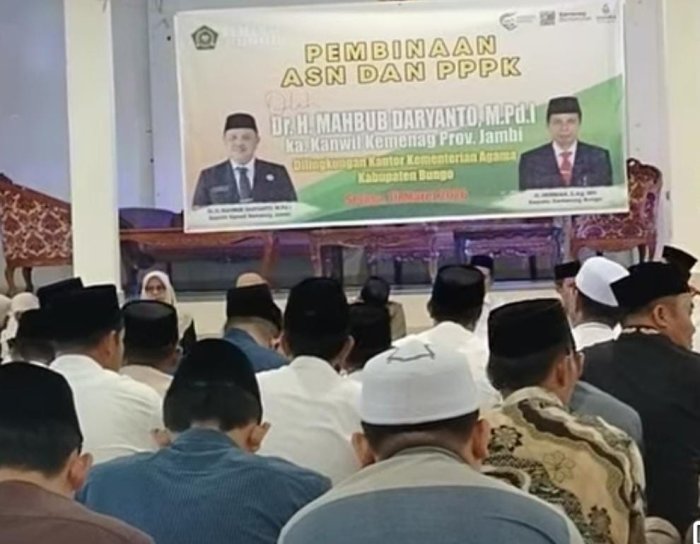 Kegiatan pembinaan tersebut dilaksanakan pada Selasa (10/3/2026) bertempat di Aula Hotel Mitra, Kecamatan Rimbo Tengah, dan diikuti oleh seluruh ASN serta Pegawai Pemerintah dengan Perjanjian Kerja (PPPK) di lingkungan Kementerian Agama Kabupaten Bungo.