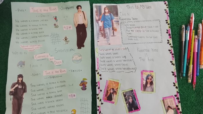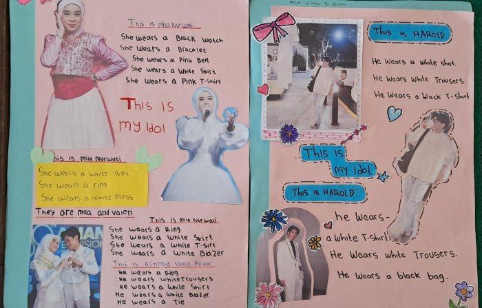 "Project sederhana ini bertujuan untuk melatih kemampuan siswa dalam menceritakan karakteristik penampilan seseorang berdasarkan pakaian dan aksesoris yang dipakainya. Selain itu, siswa juga diberi wadah untuk mengekspresikan kreativitas mereka," ujar Miss Cinta.