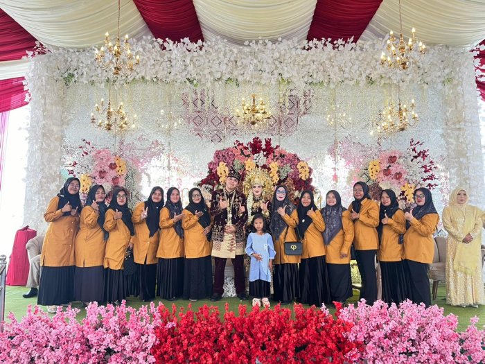 Rombongan MTsN 7 Bungo hadir secara langsung untuk memenuhi undangan sekaligus memberikan doa restu kepada mempelai. Suasana penuh kehangatan dan kekeluargaan tampak menyelimuti seluruh rangkaian acara. Para guru tampak akrab berbaur dengan keluarga kedua mempelai, menciptakan nuansa haru dan kebahagiaan yang begitu terasa.
