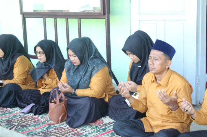 Tanah Tumbuh (Humas) - Bertempat di halaman utama madrasah, rangkaian kegiatan Yasinan bersama keluarga besar MTsN 7 Bungo yang dilaksanakan pada Jum'at (10/4/2026) berlangsung khidmat, tertib, dan penuh keberkahan. Kegiatan rutin yang menjadi bagian dari program Jum'at Berkah ini kembali menghadirkan suasana religius yang menyejukkan sekaligus mempererat kebersamaan antarwarga madrasah.