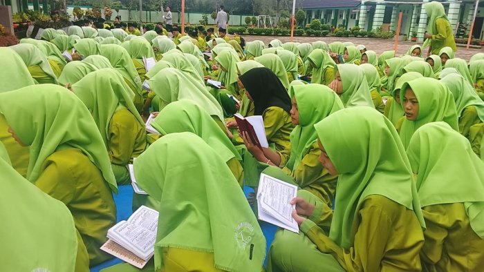 Tanah Tumbuh (Humas) - Rangkaian kegiatan pengajian Yasinan bersama di MTsN 7 Bungo pada Jumat (17/4/2026) berlangsung dengan khidmat di halaman utama madrasah. Kegiatan ini diikuti oleh seluruh dewan guru, staf, serta siswa-siswi dengan penuh kekhusyukan dan semangat kebersamaan.